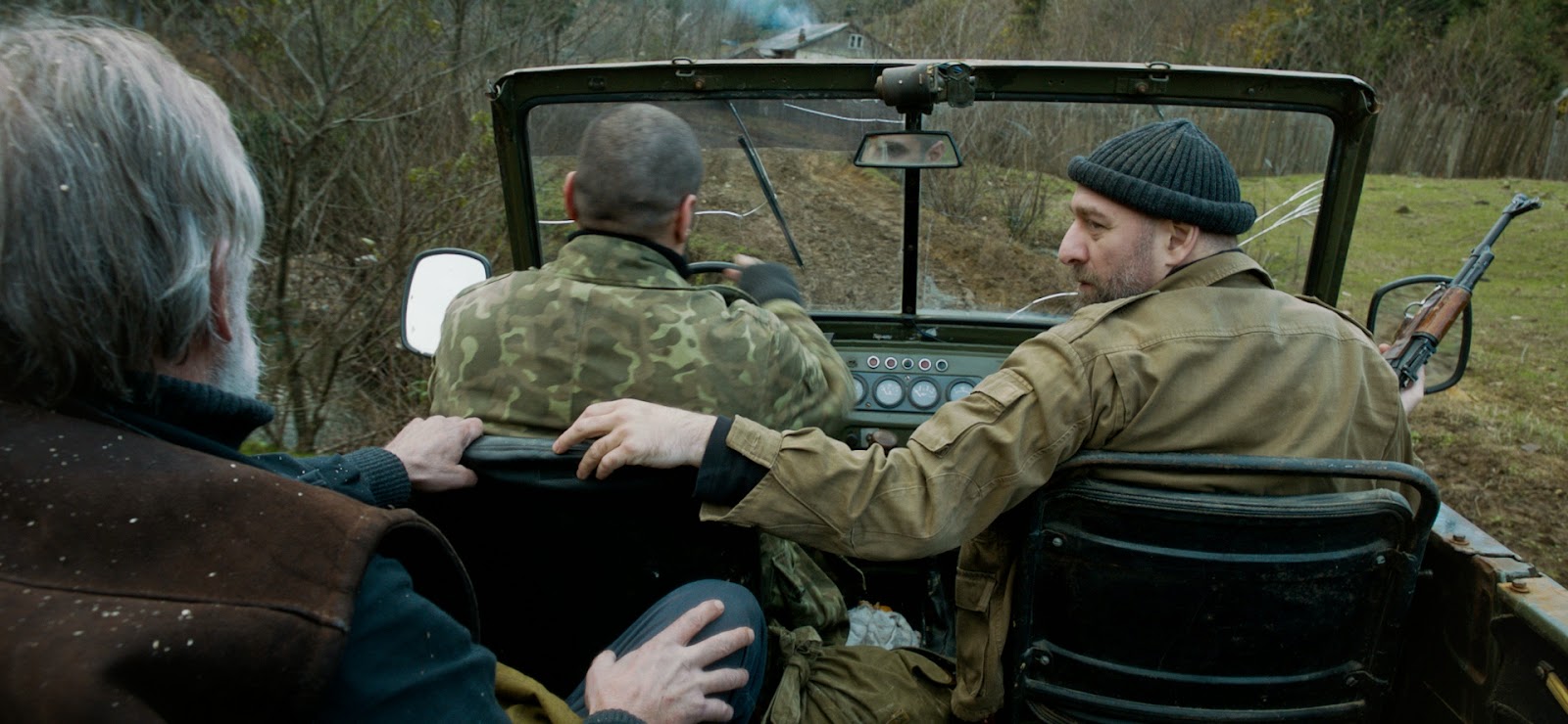 The relative peace of Ivo’s existence is abruptly shattered when a small but nasty firefight takes place between rebel and Georgian forces at the edge of his property. Most of the combatants from each side are killed, but two of them – one from each faction – somehow manage to survive. Ahmed (Giorgi Nakashidze), a Chechan mercenary, and Niko (Mikheil Meskhi), a Georgian soldier, suffer serious injuries, but care is at hand. With the aid of Juhan (Raivo Trass), the local physician, Ivo takes in the survivors, tending to their wounds and slowly nursing them back to health.