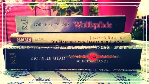schon gefreut hatte. Ich denke, es kann man gut als ein Hälfte-Hälfte-Paket beschreiben. Die eine Hälfte hab ich bereits gelesen, wie schon mal oben erwähnt, in dem ich mir die Bücher bei Freunden oder aus der Bücherei geliehen hatte. Hier rechts wäre das Richelle Mead mit dem sechsten und letzte Band der Vampire-Academy-Reihe. Die Märchen von Beedle dem Barden kenne ich allerdings noch nicht, genauso wie den dritten Teil von Lori Handelands Wolfspfade. Bei meiner letzten Rebuybestellung hat es Teil 1 und 2 in einem Doppelband für unschlagbare 99 cent gegeben ;D