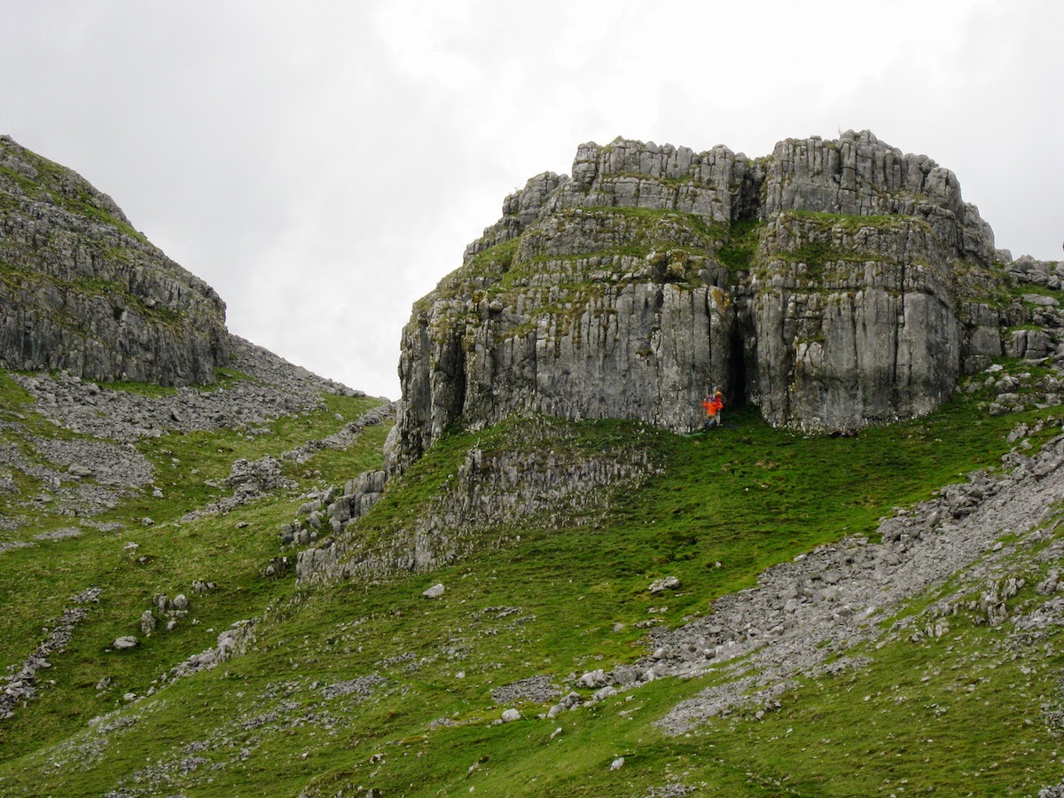 A half-remembered sceneI dropped down to Malham. It was gone seven in the evening and the village was deserted. I pressed on, and fifteen minutes later marvelled at the novelty of having Malham Cove to myself – almost. There were no other walkers about, but climbers were larking about on the enormous overhanging cliff.
