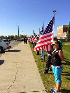 As I parked and made my way to the gymnasium, I was awed to see that a group of citizens, who appeared to be members of various motorcycle clubs, were lined along the sidewalk that led to the gymnasium, each of them holding an American flag, forming a silent salute of gratitude to Sergeant Moore’s memory, and the sacrifice he paid.