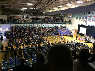 We stood in line for an hour while waiting to be seated, and once we arrived at our seats, I was overwhelmed by the sea of law enforcement officers. From my vantage in the balcony, I was able to estimate that approximately 3,000 officers were gathered to pay their respects. Once the gymnasium was filled to capacity, an overflow area was utilized, complete with television screens and a live broadcast of the ceremony.