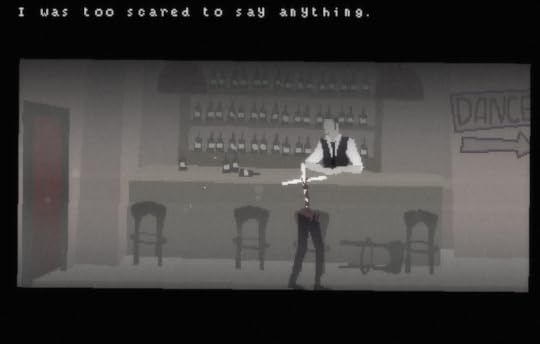 It also has a little in common with Groundhog Day, following a repetitive path between waking up outside of a bar, and travelling between it and a dance hall. Frank, the protagonist, has five modes of action: He can moonwalk in either direction, he can examine and interact with people and objects, he can pop pills, and he can slowly walk towards a destination.