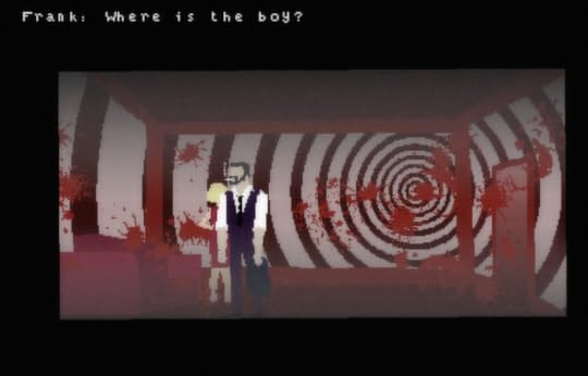 Ermakov changes up the pace by taking away certain actions and adding in different settings, increasing the unease possibly experienced by the player. At one point, Frank, who also answers to Stan, even enters his familial home, complete with wife and kid. The game's nods to its influences can be startlingly direct: each “sequence” ends with a Lynchian close-up, zooming in on Frank until you can see each individual pixel; the music feels like it was taken straight out of one of Jodorowksy’s soundtracks; the background of the living room in Frank's home looks like it was taken out of The Holy Mountain, complete with the 1970s style swirls, bright colours and blood splatters.
