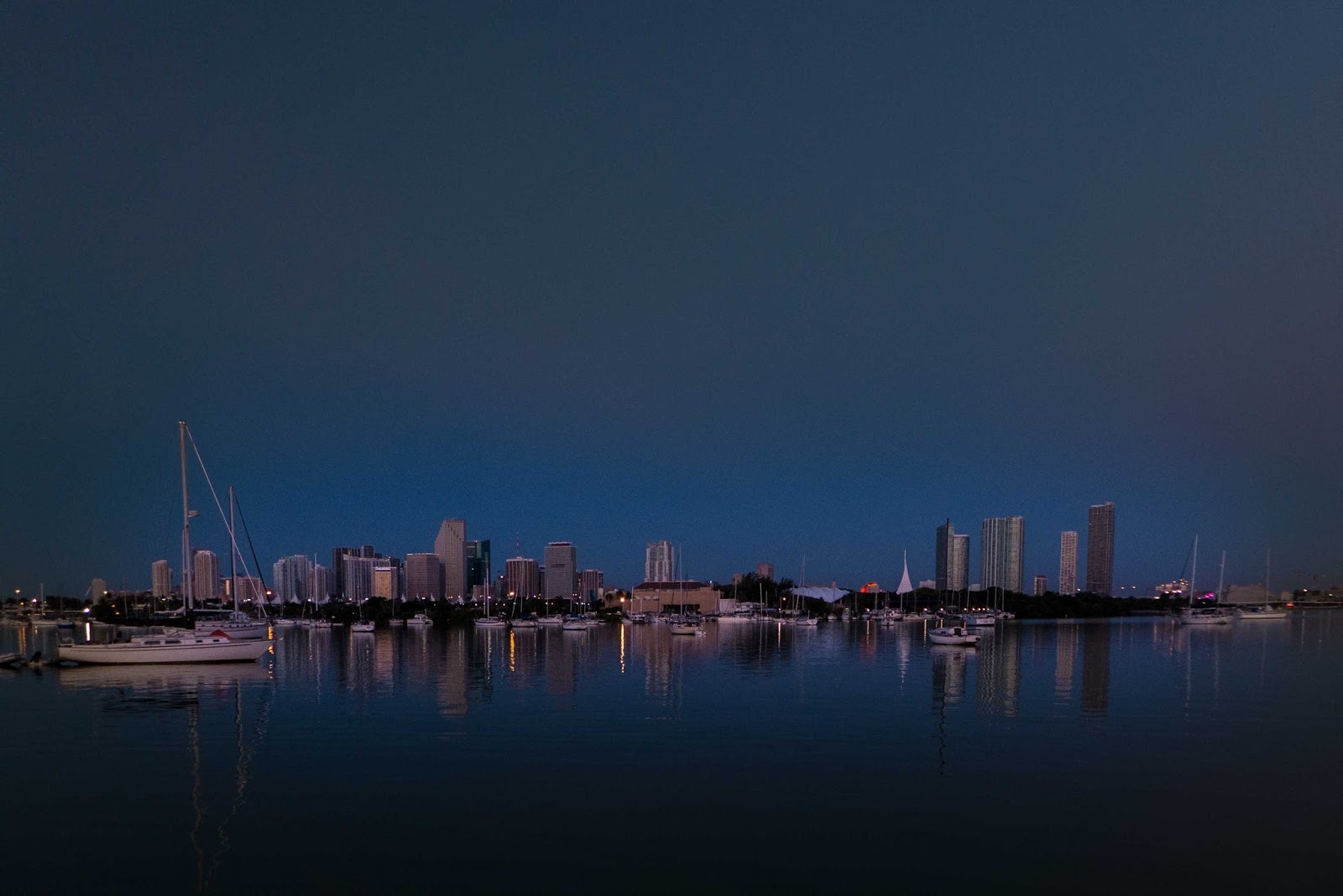 At sundown, we had the Miami skyline well in sight. The wind dropped to nothing, as if someone had switched it off. We started the engine and motored into the ship channel, turning up into the Intracoastal Waterway at Watson Island. We were in familiar territory.