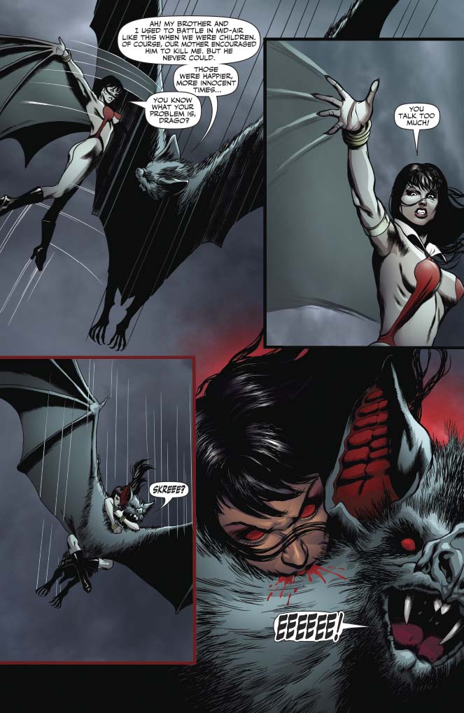 Marked by the evil cultist leader Ethan Shroud as a living sacrifice to Lady Umbra, demon sister-bride of the Mad God Chaos, Vampirella must search for and kill the rarest and most dangerous vampires in order to become powerful enough to keep the rising darkness within her from destroying the world. It also includes the 2014 Vampirella Annual "Prelude to Shadows", drawn by Cristhian Zamora, where Vampirella must go undercover as a nun to hunt down Metifa the Devil's Mistress, a demon-witch haunting a French convent.