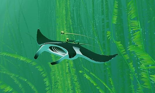 As I've grown older, that terror has transmogrified into a fascination with just how teeming with life the ocean is. There's a lot going on in there. This is something that underwater exploration game ABZÛ seems to capture, on both a large and small scale, realizing the beauty of all the underwater traffic. There are schools of fish that you can swim alongside at the press of a button. Turtles and manta rays can can be clung to for a ride, again, at the touch of a button. There's a whole ecosystem to explore, apparently comprised of tens of thousands of fish, all of which have their own routines and behaviors to interact with.