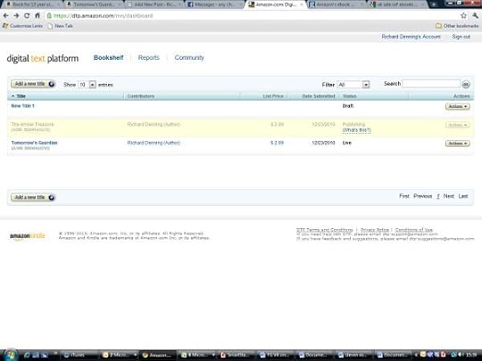 3. If you click on bookshelf you get the screen shown above. You will notice that I have already put on two books. You get updates here on the status of the books. Tomorrow's Guardian is online whilst The Amber Treasure is 'publishing' – in this case updating since I made that change to fix the map. To add a new book click on "add a new title".