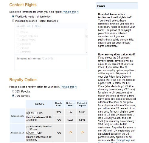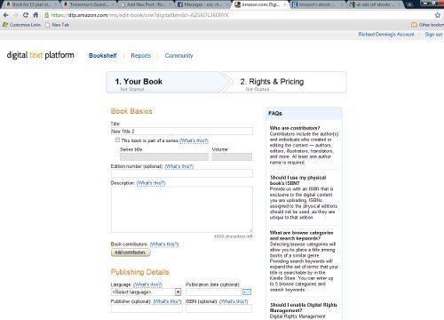So then how do you go about getting your book on Kindle? Firstly you need to make sure this is your book of course. If you have a publisher it is they that should be doing this. But if you are self published like myself and you have full worldwide rights to the book then you can put it on.