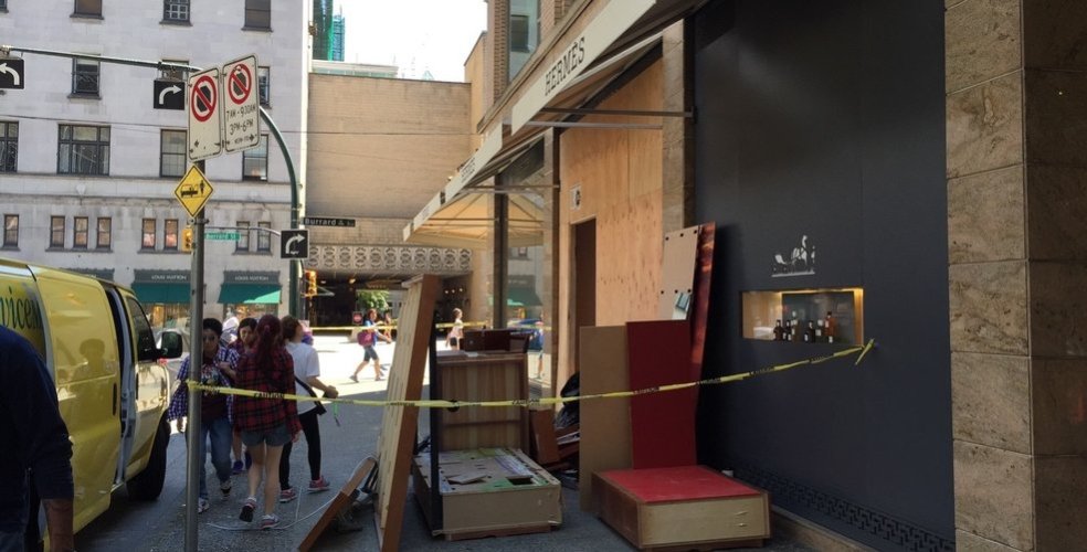 Around 4 a.m. on Saturday morning, the Hermes Vancouver store on Alberni Street in downtown was broken into as a truck was driven into the storefront window.