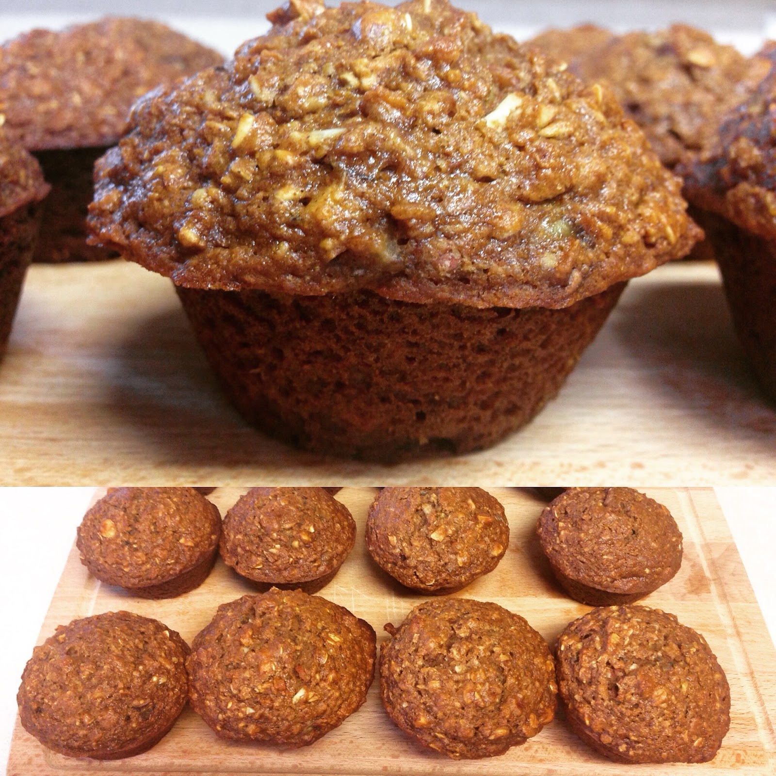 Apple muffin. I had an apple and wondered what to do with it. Did I want pancakes? No. So, I took whole wheat pancake mix, added a cup of ground oats, an egg, some almond milk. Then I took an apple, chopped it up fine. Put some in the grinder and made apple sauce. Ground up some almonds, threw that in. Yummy! Don't be afraid to get creative with your food.