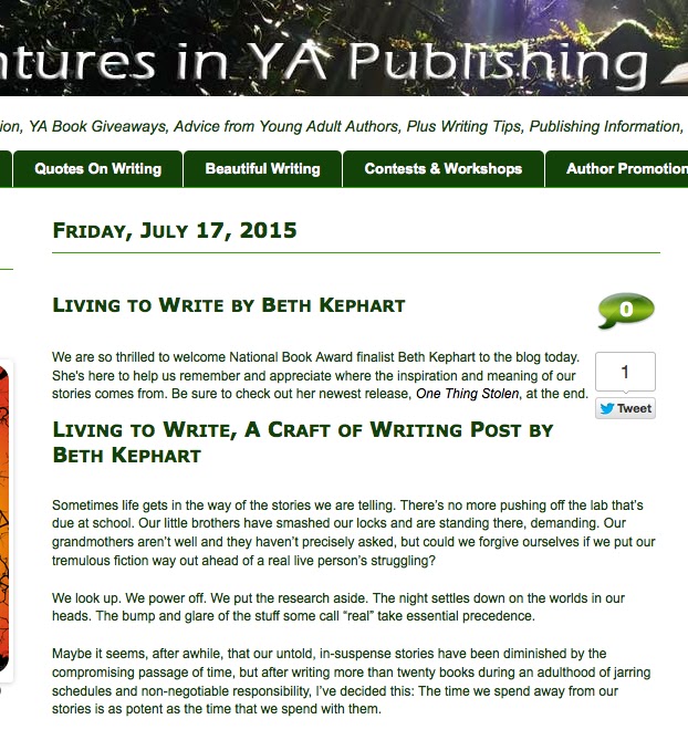 When Adventures in YA Publishing invited me to write a craft essay, it took me some time to center in on a topic. The truth is, I haven't been writing a whole lot lately. I've been spending time with my father. Spending time with my friends. Thinning out my house to be sure that it holds only things I feel are essential. Reflecting on this career, this publishing life, next steps.