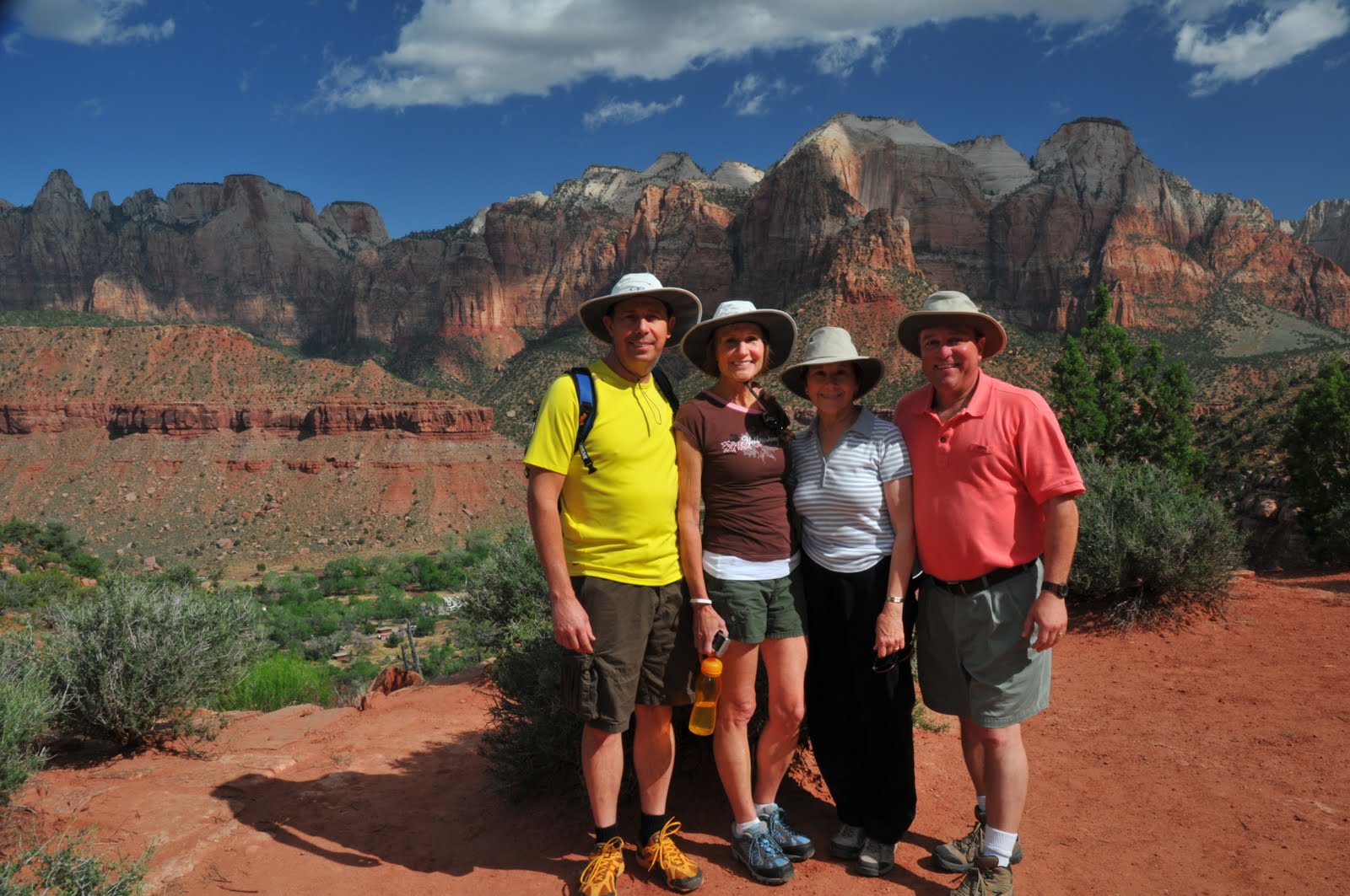 Our first morning, we chose to hike the Watchman Trail. We made our way up a short canyon passing colorful displays of wildflowers to an overlook with a panoramic view of the valley below and the Watchman Peak standing at Zion's entrance.