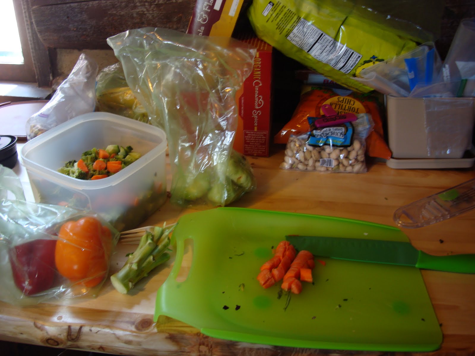 (see Keep Your Vegetables and Fruit Fresher Longer) to the cooler and away we went.I cut more veggies when needed and expected to add some from locations on the road (a risky assumption). Turns out the veggies lasted the whole trip. Used the last carrot on the last night during the return trip home.