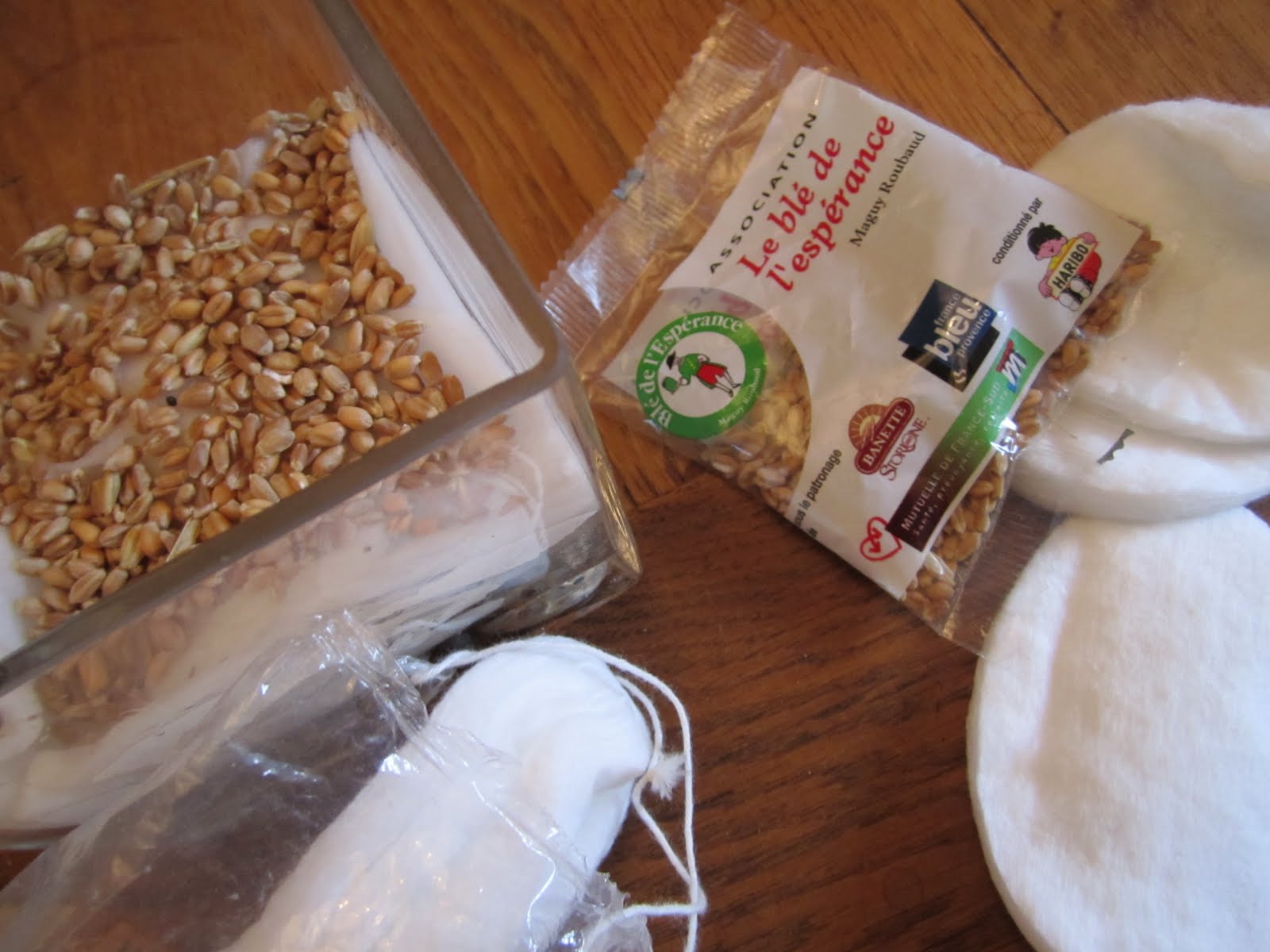 We are also one month late in the Provencal tradition of le Blé de l'Espérance - the Wheat of Hope. Each year on the 4th of Dec. (the Feast of Sainte Barbe), Provencal households plant a small sachet of wheat in a cup full of wet cotton. If the wheat grows green and straight, the New Year will be prosperous. (If you don't hear from me, it died.) Having missed the Dec. 4th deadline, we decided to wait until Jan. 4th to plant ours, so the verdict on 2011 is still out. The last thing I grew was in kindergarten - one of those potatoes suspended over a glass of water with toothpicks, so we'll see.