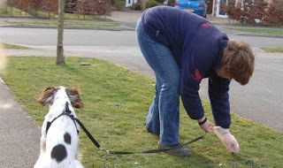It was a hot day, and they sat chatting, with the window down, apparently oblivious of me, the dog, and the dog's recent evacuations just a couple of feet away from where they were sitting. I set about my allotted task as best I could, but the presence of an audience at such an intimate distance rather put me off my stride. Even the dog had the good grace to look embarrassed.