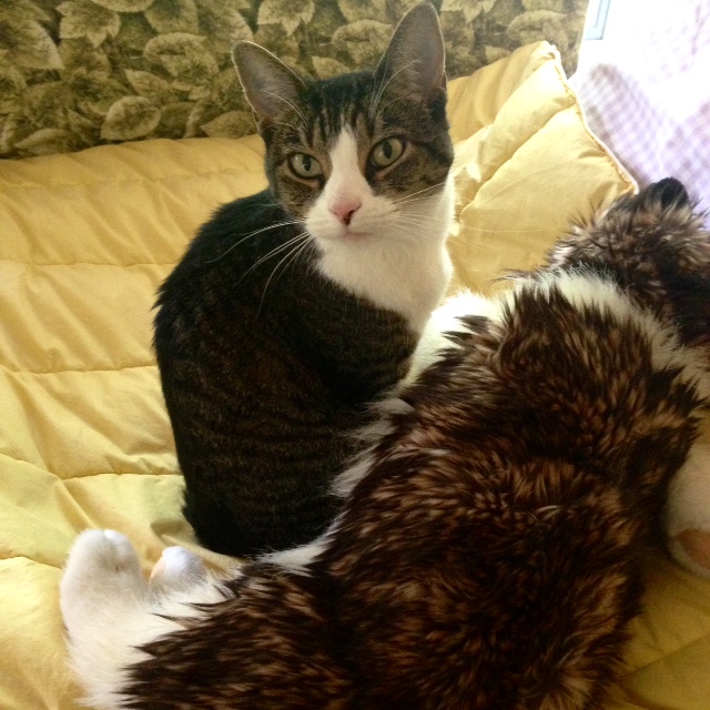 Minou has become great friends with Scruffy Kitty! I don't think she cares that SK is just a hand puppet.