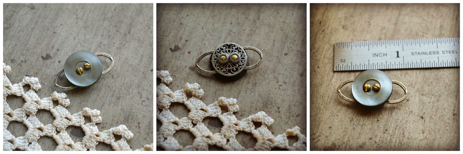 Fresh off the studio workbench today, are these little lovelies! I was just messing around with some ideas, and developed these cute little components using my old vintage button stash. Riveting them together with screw rivets, and adding rings to create links, larger rings for toggles (and toggle bars) and even a few with soft leather. Each one is double sided as well so that in case they flip, you'll have something pretty on either side. I kept them kind of small too so that they aren't too heavy and they should work great for both necklaces and bracelets.