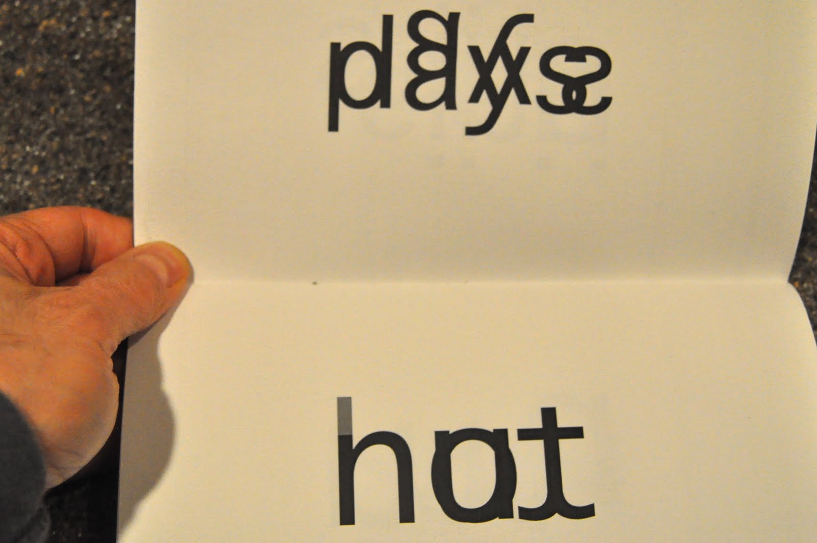 An example of the latter is "plaaayyss," just above, a jovial little visual pwoermd in which the idea of playing (it makes me think of various rides on a playground) is made playfully, through the process of playing with text and finding out what it can do. In the second poem above, four words are overlapping: "hot," "hut," "not," and "nut," the difference between the h and the n noted by the grey of the aitch's ascender. Now, I'm not sure if this makes this poem a hot nut hut or not, but it's doubled t is a beauty, almost a cursive sight.