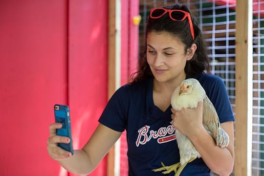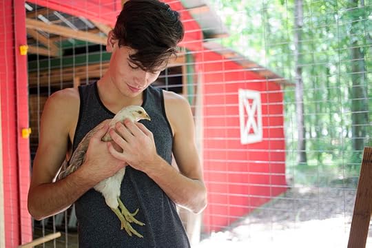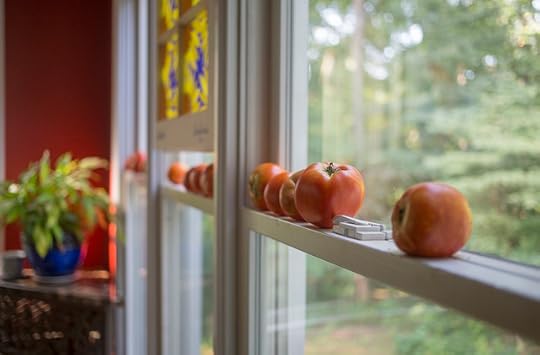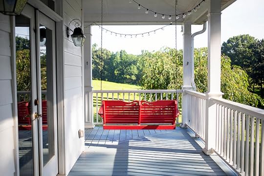 blue porches and red swings, ripe tomatoes on the sill, children snuggling chickens,