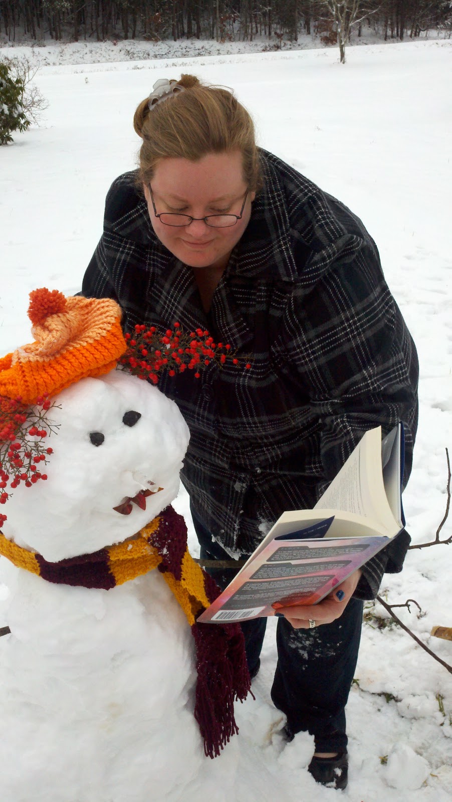 The husband and I spent rather a lot of time trying to make it look like SnowAmy was actually reading, but her arms are made of tree branches (so she doesn't have opposable thumbs) and her body is made of snow (which is made of water, which is not healthful for books), so in the end, we gave up.