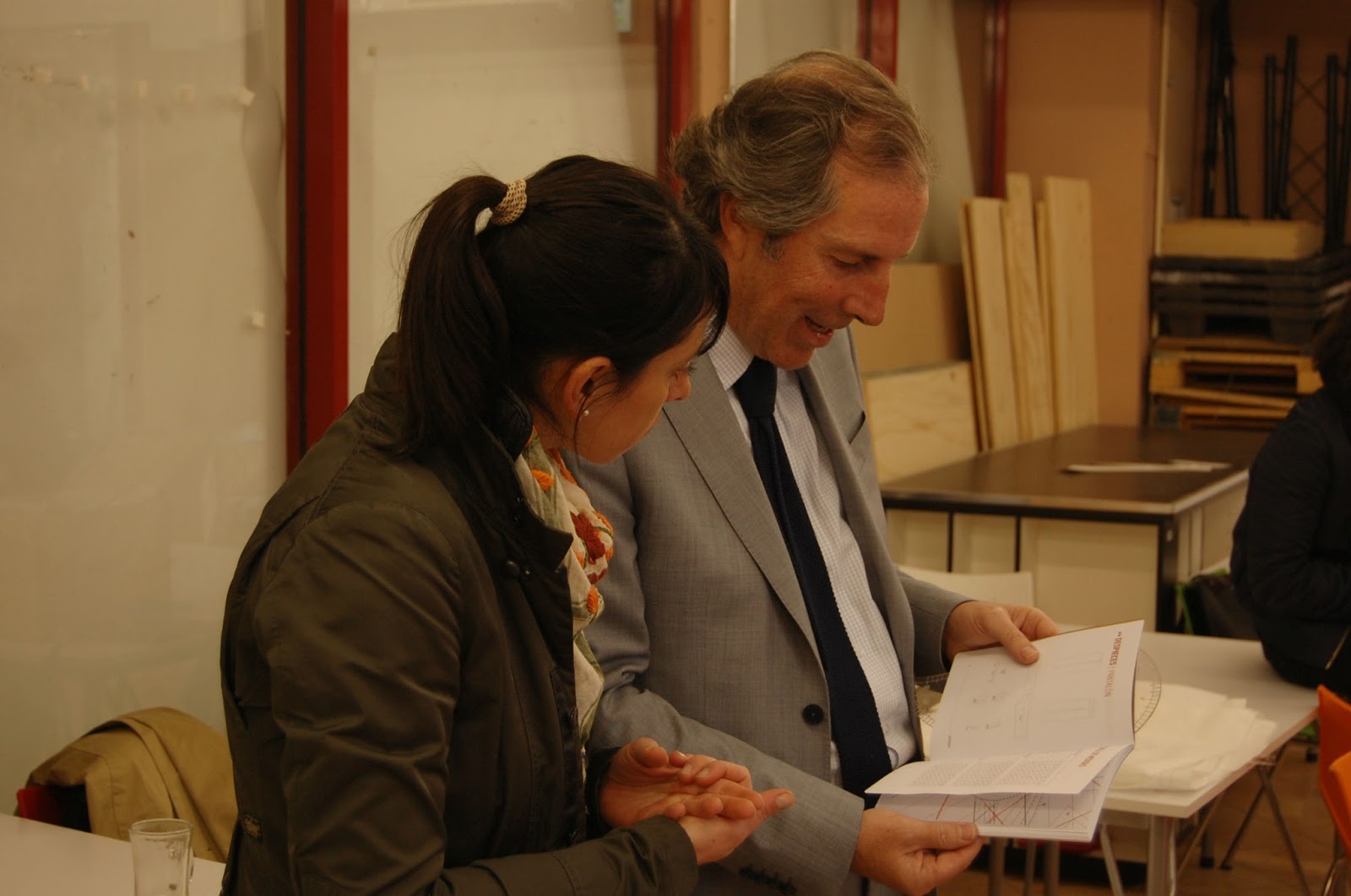 Marcelo Cubillos supervisando la labor de los grupos (arriba) - Un grupo en pleno trabajo creativo (abajo)