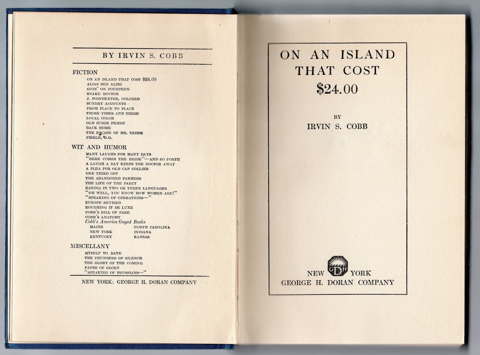 On an Island That Cost $24.00 by Irvin S. Cobb, is a collection of short stories, only one of which I really need to get: