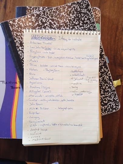 As you can see here, I brainstormed all sorts of words that seemed to have that connection to American myth. Not all of these initial ideas made their way into the story. But creating a list primes my imagination for the next step in figuring out who the characters are, what their journeys will be, what arc the story will take.