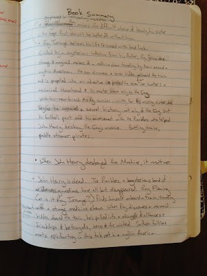 I filled 4 notebooks exploring what I wanted the story to be. This, in a way, is my first-draft. The process for every book is different, but for The Nine Pound Hammer, I did a lot of pre-planning. Months and months of planning! Some pages were filled with questions and ideas about the characters.
