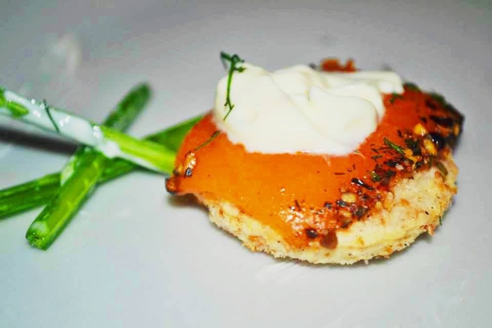 Suka salmonnya.Pertama, appetizer yang membuka malam ini bernama Flat Bread Topped with Smoked Salmon, Sour Cream and Fennel. Agak ribeut ya namanya walaupun bentuknya imut. Sebenarnya roti yang dikasih topping ikan begini adalah favorit saya semenjak pernah jalan-jalan ke Eropa. Soalnya, cara mencari makanan halal paling mudah adalah roti sama ikan begini.