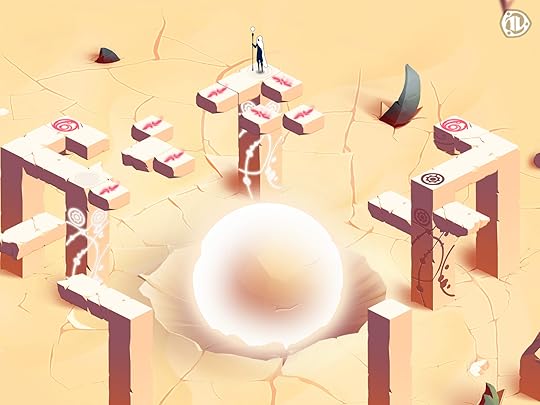 Its worlds vary from desolate sand gardens occupied by energy-filled obelisks to volcanic grey islands surrounded by a sea of patterned turquoise, each putting to use Escher-inspired perspective tricks in their own way.