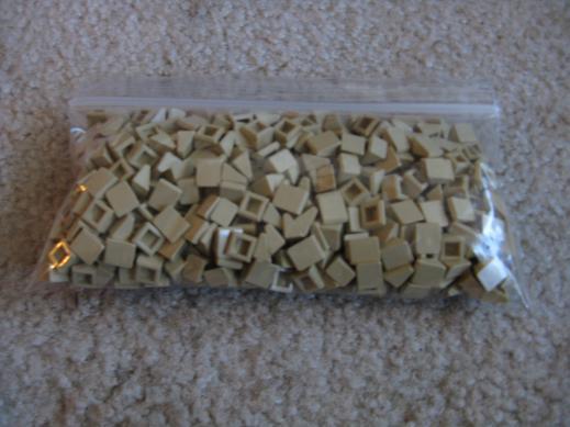 Five hundred fifty-six pieces -- more than ten percent of the total -- are these little 1x1 tan slope-y bits. (You'll see why later on.) I was damned if I was going to count them all.