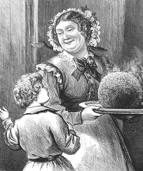 This rhyme is altogether more straightforward. If you’ve ever made traditional Christmas puddings, you’ll have some idea what this is about. The pudding ingredients are mixed and then placed within a large muslin cloth which is gathered around the mix and tied off. The pudding is then steamed or boiled. Obviously, a playful cat took a fancy to the securing string and played with it. Perhaps the cook saw what kitty was about and chastised her, at which point the cat takes off with the string in her mouth and pulls the pudding after her.Simple! (Must have been a small pudding though.)