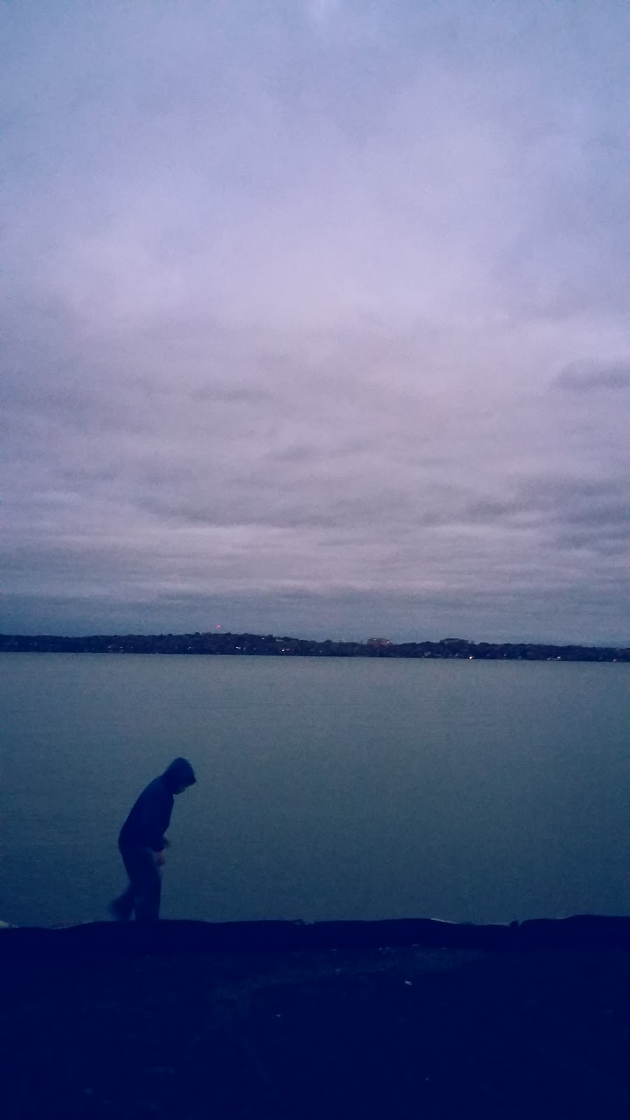 Then I hummed that as I took Mr F out for a walk down to the vacant lot, where we threw some rocks in the lake and looked at the cloudy night sky.
