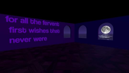This text is written across the walls (and once on the ceiling) of the vacant house. However, it only appears inside a room once you've walked into an object spinning in the middle of it. The first is a birthday cake, and the text that follows is dedicated to "all the birthdays that never were" and "the fervent first wishes that never were." Each of the verses correspond to the object that triggered them in such a way, and it's always to remark on absences.