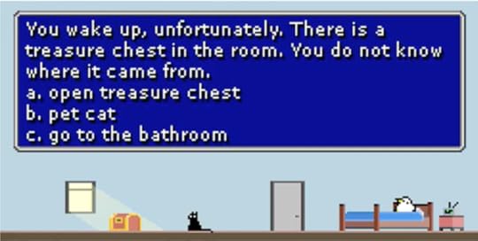 When I scroll through my Twitter feed, I’m never hard-pressed to find selfies, silly jokes, personal anecdotes, opinions on whatever dumb, ignorant thing Donald Trump said recently—but what I don’t expect to find is a Choose Your Own Adventure game, complete with pixel art gifs and a seemingly infinite number of choice-related deaths.