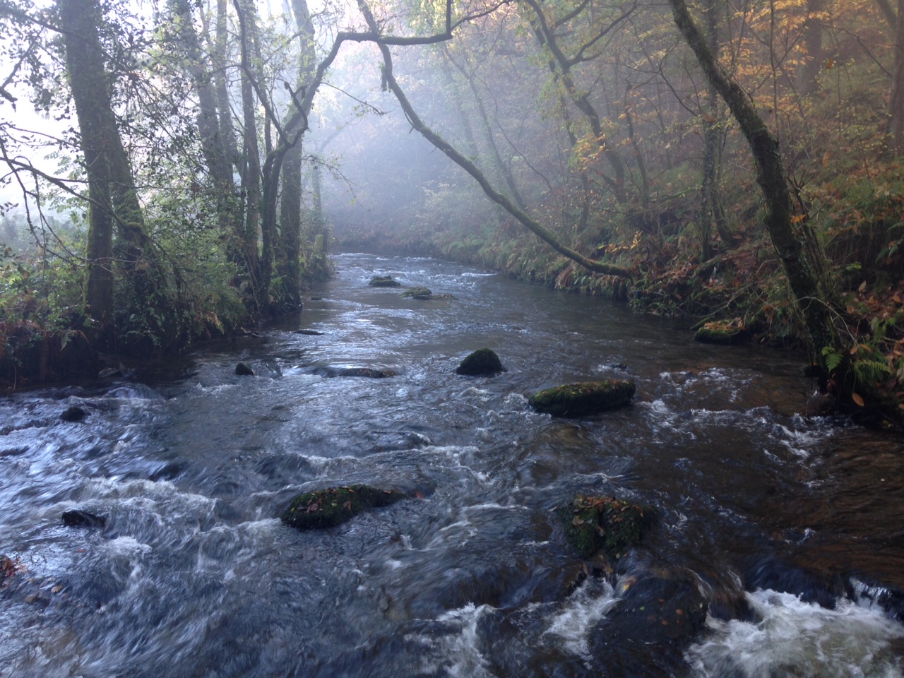 At last, after years of yearning to live in the country, I have moved to south east Cornwall from east London. We moved early September but I've been travelling nonstop since then and have only now started to settle in and explore the landscape. Yesterday we walked on Bodmin Moor, very close to us, and this morning we crossed the fifteenth century Stara Bridge, about two miles from our house, along the River Lynher, following the muddy path through Stara Woods. The Lynher is a fast flowing steep river with rapids, dizzying to look into, so it was with some terror that I crossed a suspension bridge over it that swayed and bounced as I clung to the rope sides. The suspension bridge reminds me of a trek I did in the Annapurnas, over more terrifying bridges, but at least those were wider! The third photo below was taken by my husband halfway across, no way would I ever let go of the ropes to do that!
