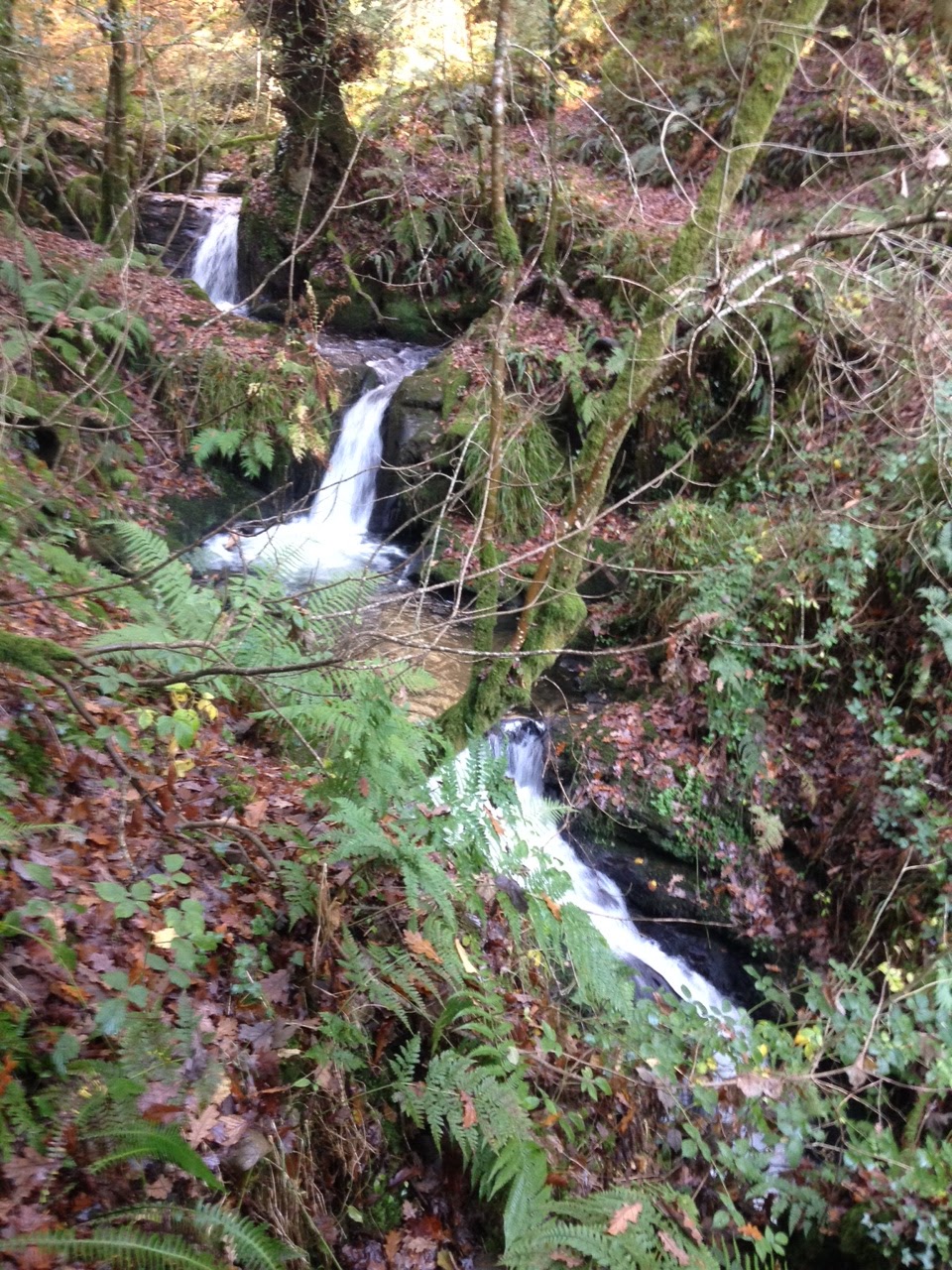 The other two photos were also taken by him, after a long trek through the woods to upper cascades on a tributary of the Lynher. Along the riverside there are sandy banks where kingfishers might be spotted, so we'll be back often in case we get lucky. The Lynher is also a few hundred yards from our house, and quite wide at that point, we can hear it from our garden but we are up a hill so out of the flood zone. Our front garden is wild, rather like a miniature Bodmin Moor, with hummocks and impossible-to-mow grass, and is bordered by a Cornish wall. The back garden is where my den is, from it I can observe goldfinches, chaffinches, and wrens peep in through my windows. The patio doors look out onto the low back wall and a back field where three very fat pet pigs have their snouts buried in clover.