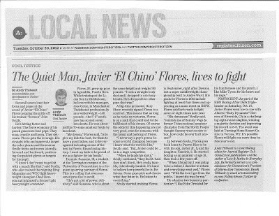 POSTSCRIPT: As part of the HBO Boxing After Dark triple-header on Saturday, Oct. 27, Javier Flores went toe-to-toe with Alberto “Baby Dynamite” Herrera of Riverside, CA in a challenging eight-round slugfest, winning a majority decision and improving his record to 8-0. The event was held at Turning Stone Resort Casino in Verona, N.Y. It’s possible Flores will fight one more time before year’s end.