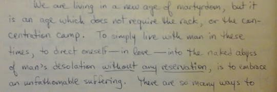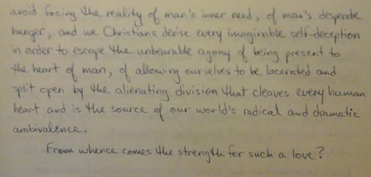 Which leads me to one final point for Young JJ -- "Christians" do need to "live with" human beings all the way to the "naked abyss," the "alienating division that cleaves every human heart." But after twenty five years of poor attempts to live this way, the "man" whose desperate heart, whose hunger, and whose "dramatic ambivalence" I have learned most about is myself.