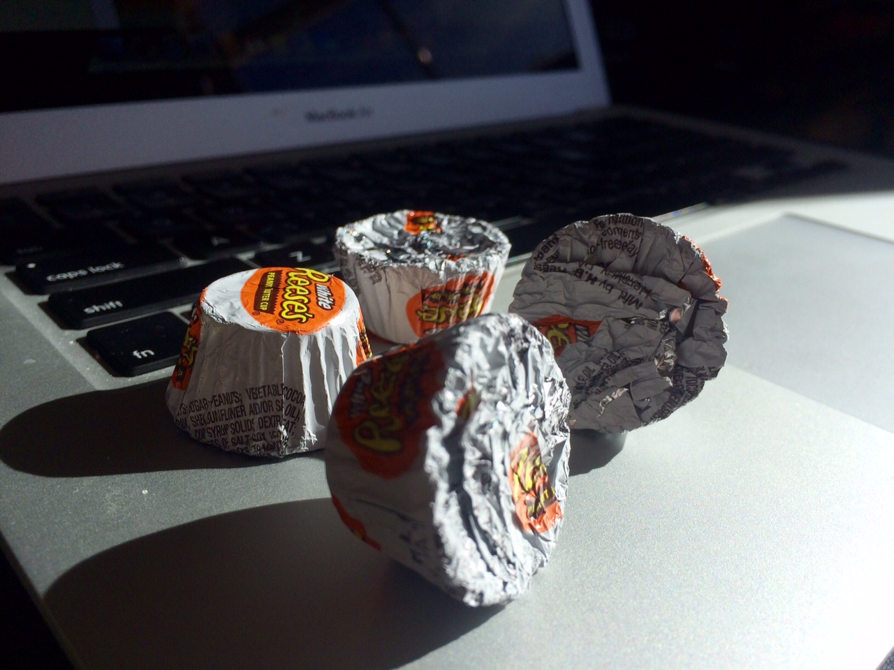 Okay, I might have lied when I said "very healthy" because in preparation for NaNo I went out and bought some delicious white chocolate. In fact, I found white Reese's cups for the first time ever and almost did a jig right there in the store. These chocolates are delicious. I have already gobbled down a few of them and am currently wondering why I only bought one bag. I mean, NaNo lasts a month, right? (I don't generally allow myself chocolate, people. Or candy for that matter (except life savors) so this is a special treat and I'm enjoying it greatly.)