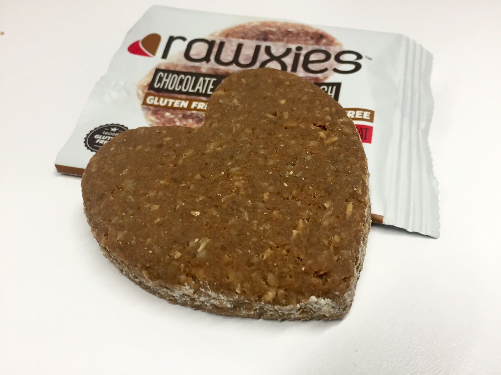 I had the Rawxies treat today before my noon yoga class! Tasted like a chocolate chip cookie but totally healthy. It's got a base of gluten-free oat flour with sunflower seeds, almonds, coconut, dates, chocolate, cinnamon, and vanilla. Kept me powered through yoga, and it tasted like dessert.