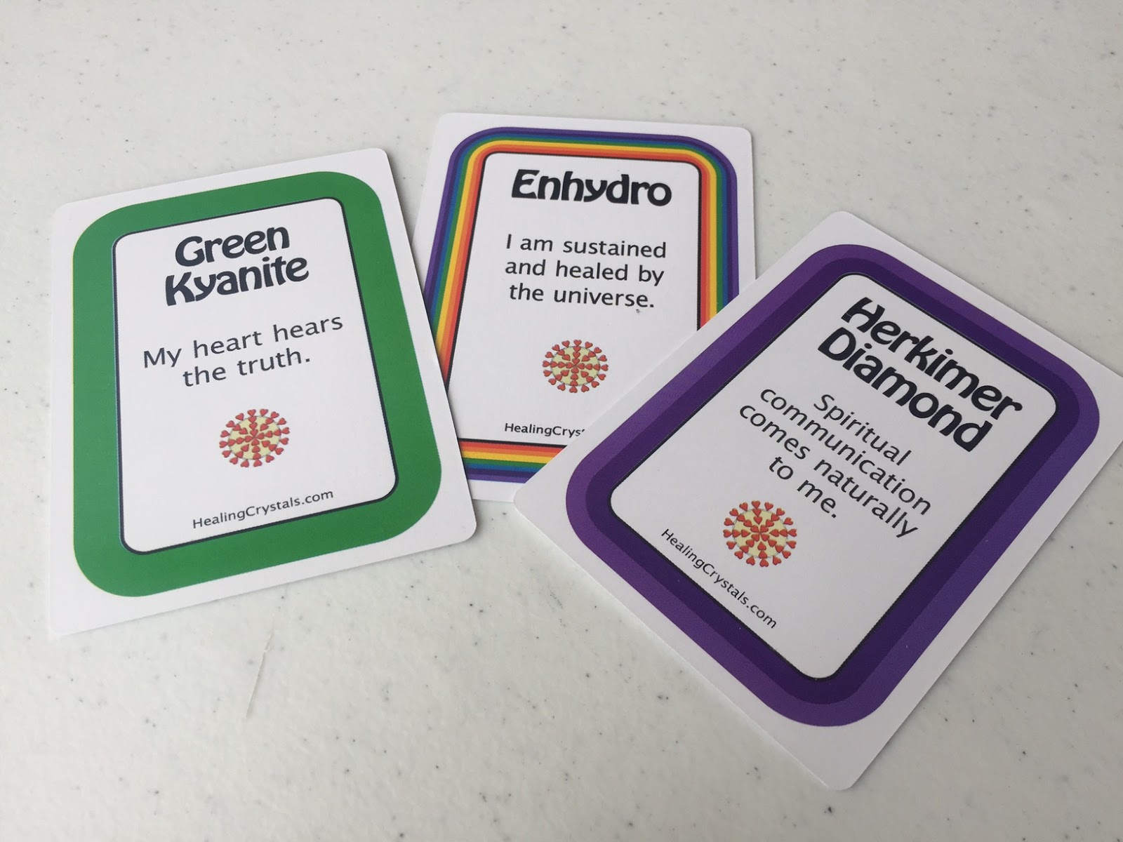The coolest part, though, is on the back of each card! There's a mantra associated with each crystal!