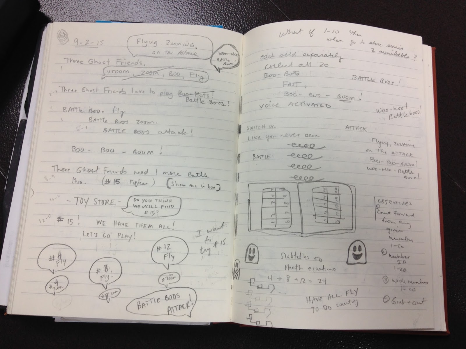 I initially answered the questions with a few ideas -- "Boo-bots, Battle Boos!, Boo-ba-loos." Also, I wrote "Collect all 20. 30."  There were even ideas of boo bucks being used to buy the toys and the toys came in multiple series. All of these ideas would find their way, three years later, into THREE GHOST FRIENDS AND THE BATTLE BOOS! (Except for the Boo-ba-loos. I don't know what that idea was all about.)
