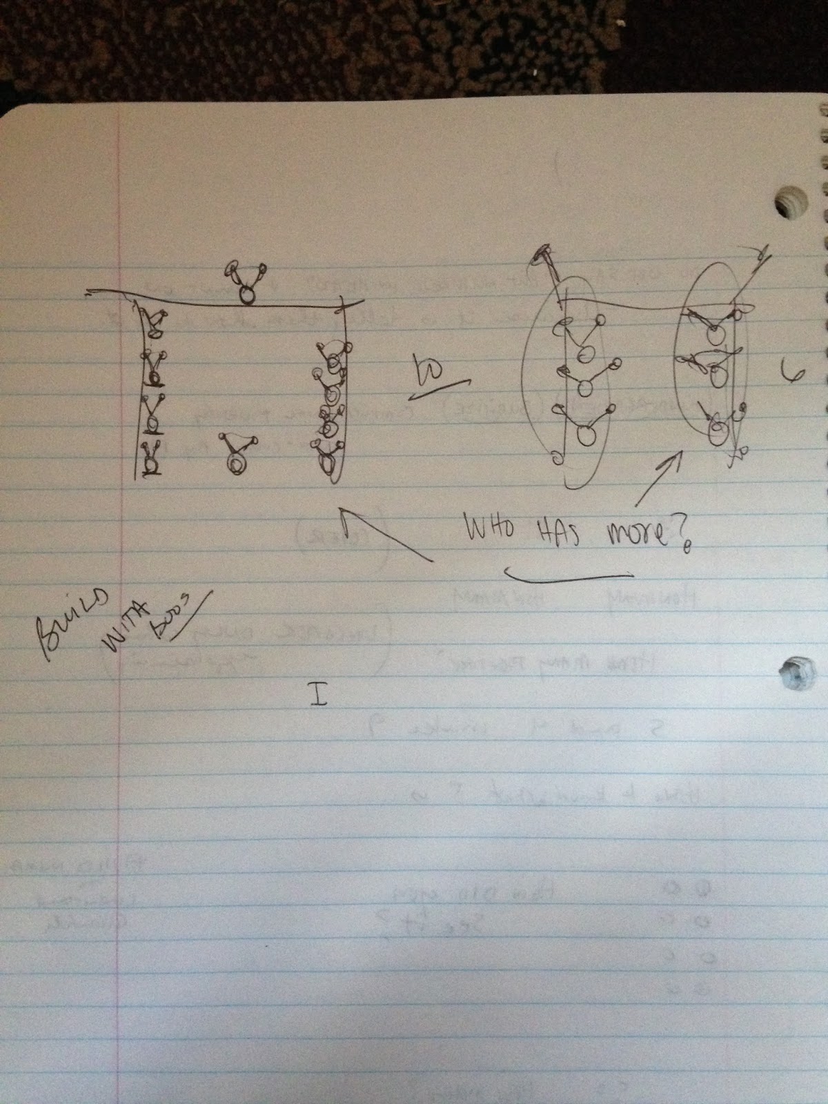 Then, I wrote "# Boo-Bots -- Dot Rows". This got me thinking that the toys could have numbers on them and maybe three ghost friends could build with them and make dot rows that could be visually counted by the reader. However, building dot patterns, like on dice, would be difficult to make by stacking and building toys.