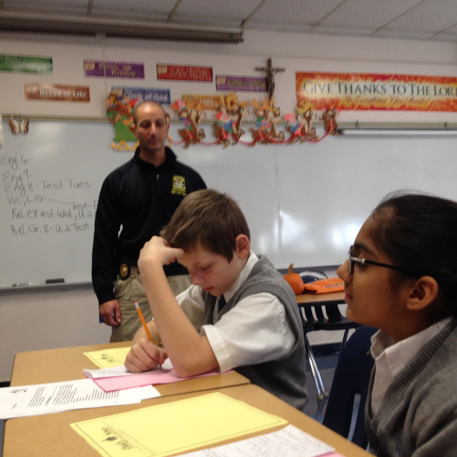 As deadline for writing first draft approaches, Detectives Brian Connolly also asks questions of the student reporters including the judgments they were making regarding the focus of their stories.