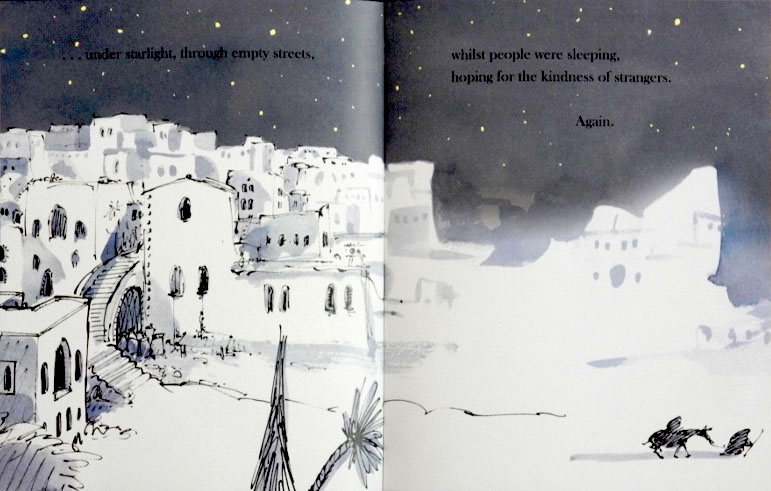 So, having got my head around how long the process is to publish a picture book, you can imagine how amazed I am at how fast my latest book ‘Refuge’ has been produced. You can read about the process here and read inside to see the actual illustrations: http://nosycrow.com/blog/the-story-behind-refuge/