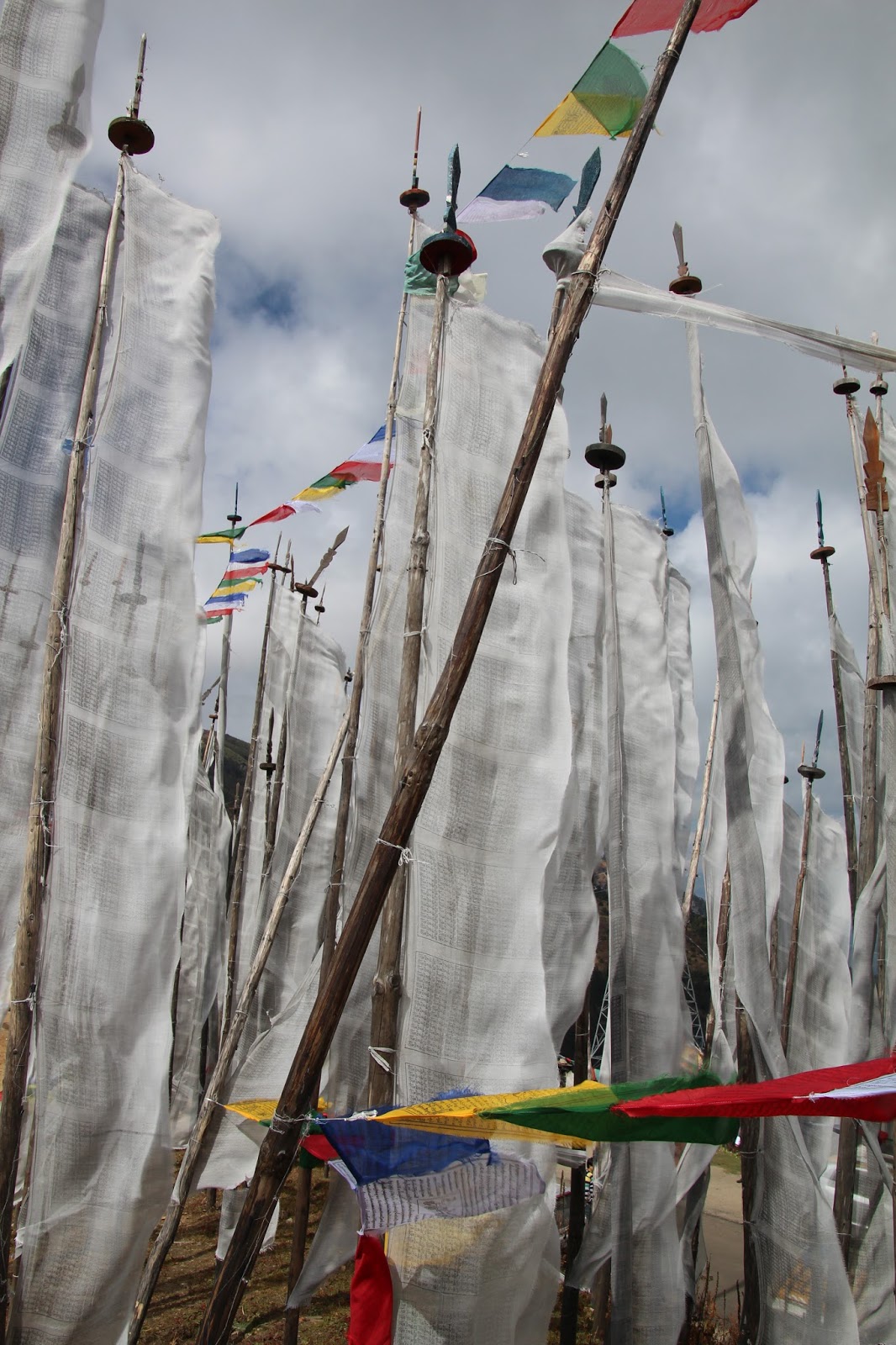 “I think they should rename this place The Chilly Pass,” I say to Mal as I stand huddled next to a clay stove and try to garner some warmth. Me along with ten others – all Indian nationals – try to find the best spot next to the fire. In front we stare at the most incredible view, upright white flags on a forest of poles snaking along a ridge line to a peak, flutter against blue skies. Either side, deep plunging green valleys spiral into dark voids and all around a kaleidoscopic swirl of colour flaps and strains and whips in the wind – prayer flags for as far as the eye can see. We are at the top of Bhutans highest motorable pass – the Chele La at (officially 3,780meters, although the sign I’m standing next to says 3988meters and our vehicles altitude reader is spruking 4030meters. Whichever it is, it’s high! And I’m starting to feel some affects of altitude. A throbbing headache and a bit of a dizz, although, I think that might be from the hairpin corners.