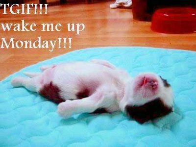 Yep, I'm so glad it's Friday. Usually, it's just another day of work, but today, and I have no idea why since I took off Wednesday because of the icy weather--but I definitely feel it's a Friday and the need to have the weekend break!!!