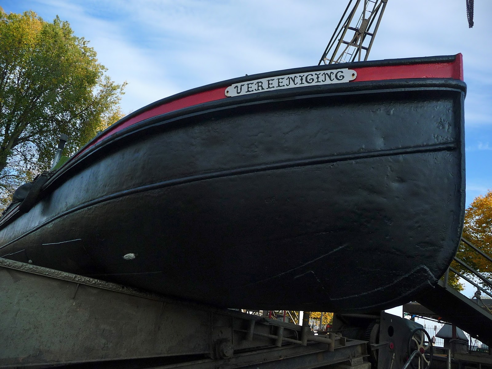 Picture pretty - all painted blackSo that's what happened. While I rolled black paint onto the rest of the hull, my super trooper Koos and wonder welder Tim set to work. Over the next few days, the Vereeniging had two big sticking plasters of about 1 metre by 50 cms welded to her derrière. Koos cut, bent and positioned the pieces while Tim welded; a tricky job as steel on iron does not always make for a happy union. All the same, by Friday afternoon it was finished and I was able to paint the final sections.