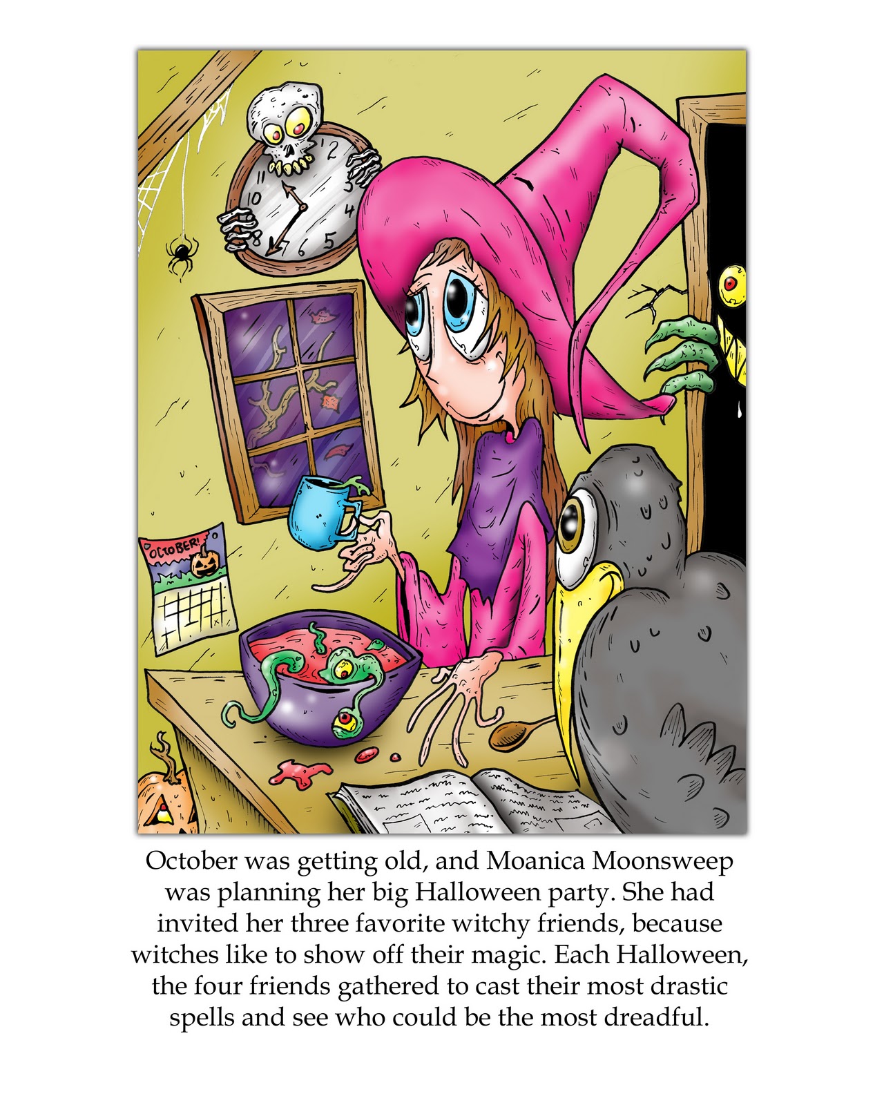 Because I love you, or you love me, or something, here's a sneak peek at the concoction now bubbling away in the labs of Mssrs. Nicholson and Davis. TOO MANY WITCHES tells the truth about jealous girls, stinky old bat wings, and  what happens when you eat too much candy. In the tradition of If I Were Your Monster, but for big little kids learning new words, coming soon to e-reading devices near you. And paper, if you are an old fuddy duddy who doesn't believe in magic.###